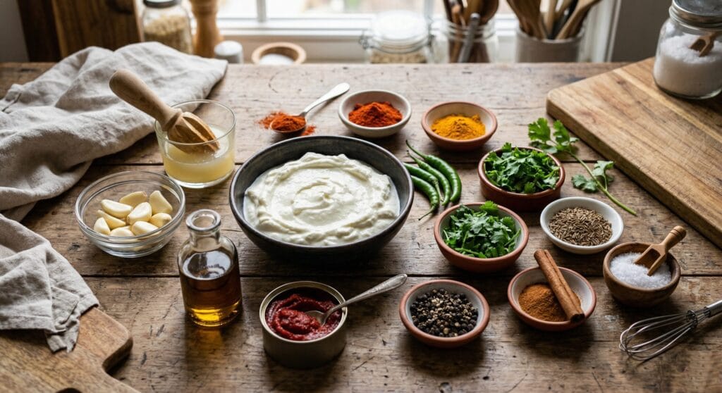 At home, it is hard to fully recreate that rotisserie effect, but you can still get remarkably close with the right marinade and a high-heat oven finish. This version keeps the soul of authentic shawaya while adapting it for a regular kitchen. The marinade is bold but balanced, built with yogurt, garlic, lemon, tomato paste, and warm spices for a richer, cleaner flavor that roasts beautifully.
